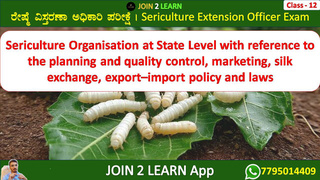 12) Sericulture Organisation at State Level with reference to the planning and quality control, marketing, silk exchange, export–import policy and laws